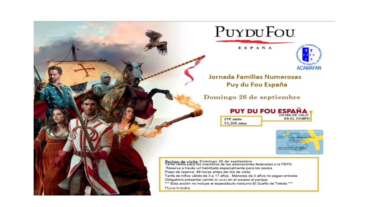 Este domingo 26 de septiembre podréis disfrutar del parque de día de Puy du Fou a un precio muy especial, exclusivo para familias asociadas.