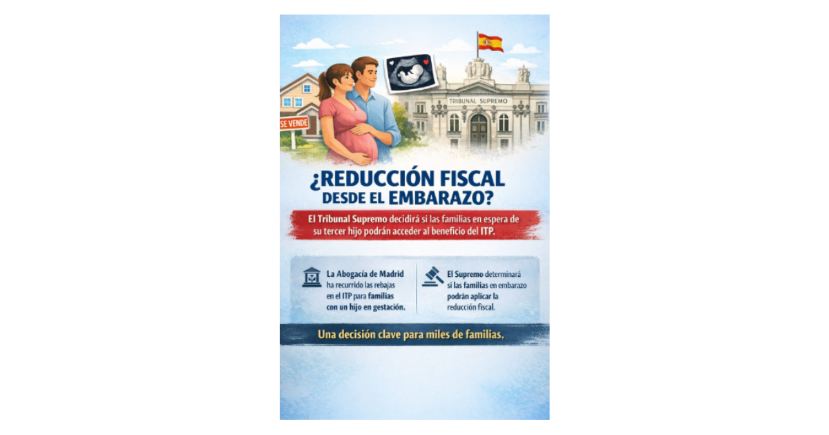 La Abogacía de la Comunidad de Madrid está recurriendo ante órganos como el Tribunal Económico Administrativo Regional y el Tribunal Superior de Justicia de Madrid contra la aplicación de una reducción fiscal en el Impuesto de Transmisiones Patrimoniales (ITP) para familias numerosas que cuentan con un hijo en gestación al comprar su vivienda habitual. Según ese criterio, para poder aplicar el tipo reducido (por ejemplo, del 4 % en lugar del 6 % en Madrid), la familia tendría que tener ya el título de familia numerosa reconocido en el momento de la compraventa, y no basta con estar esperando el nacimiento del tercer hijo — lo que podría dejar fuera a muchas parejas que están a punto de ampliar la familia. Enlaces: https://www.lawandtrends.com/noticias/tributario/la-abogacia-de-la-cam-contraria-a-que-futuras-familias-numerosas-se-beneficien-de-la-reduccion-de-transmisiones-1.html