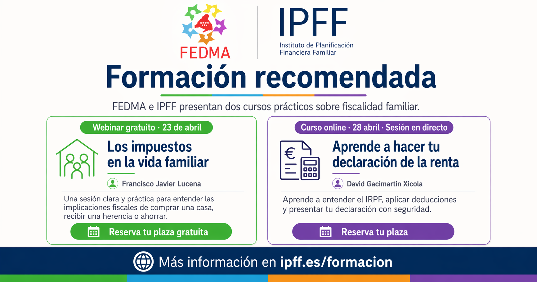 Inscripción: https://ipff.es/formacion/webinar-impuestos-vida-familiar/