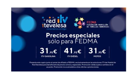 Presenta este cupón junto al carnet de afiliado a FEDMA, exclusivamente en las estaciones ITV de Madrid de Red Itevelesa para beneficiarte de precios únicos y especiales.